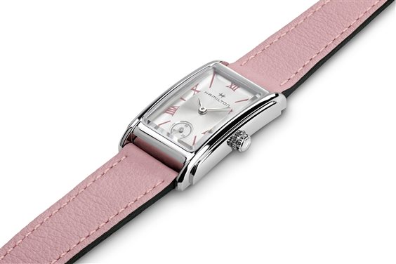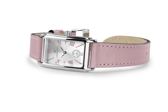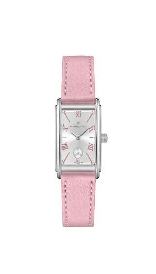 Quarzo | 18,7mm x 27mm Dotato di una cassa rettangolare, l’Ardmore Quartz mostra un approccio versatile e art déco. Ispirata alla freschezza dei fiori appena sbocciati, questa versione in acciaio vanta un cinturino in pelle rosa tenue e un quadrante argento con finitura soleil con numeri romani abbinati per un tocco di fascino femminile e uno stile fresco.