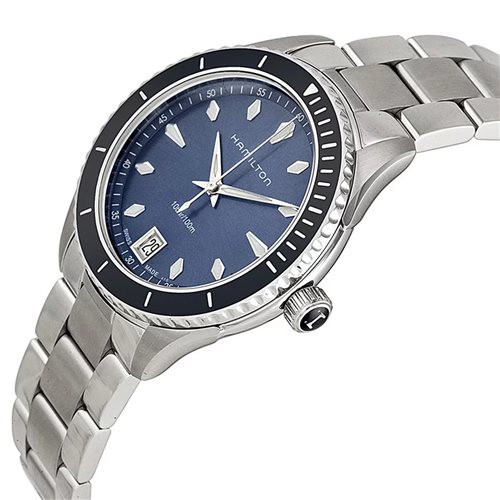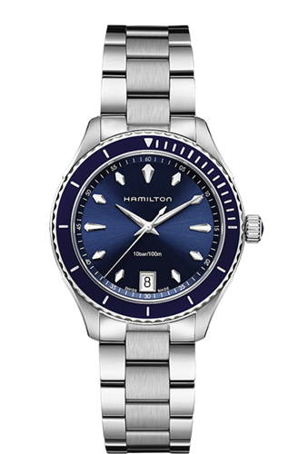 OROLOGIO HAMILTON AUTOMATICO UOMO COLLEZIONE JAZZMASTER IN ACCIAIO, CON QUADRANTE E GHIERA BLU, WR 100 ATM