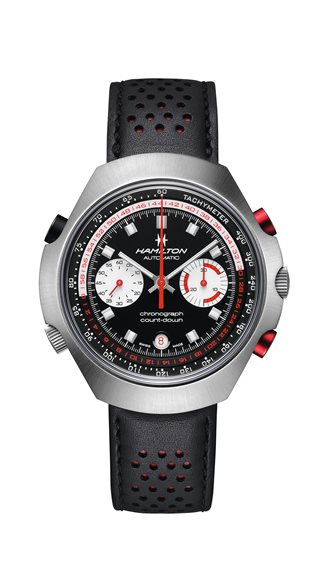 Inconfondibile e audace, questo orologio non passa certamente inosservato. Il Count-Down si basa sul Chrono-Matic E ed è limitato a 1.972 esemplari. Animato dal movimento automatico H-31, con i suoi 48 mm si fa decisamente notare. Il quadrante “reverse panda” rappresenta la firma stilistica di Hamilton. Gli audaci dettagli rossi sottolineano il dinamismo di questo segnatempo multifunzione che include il timer (“countdown”) da cui l’orologio prende il nome.