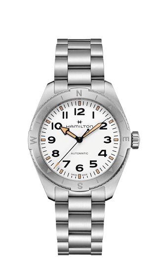 Preparati per le avventure all’aria aperta con il Khaki Field Expedition, un orologio ideale per tutte le attività outdoor con un design a bussola. Racchiuso in una cassa in acciaio da 41 mm corredata da un bracciale coordinato a 3 maglie con fibbia déployante, è dotato di una corona a vite per proteggere il movimento. Completato da un quadrante bianco con finitura sabbiata per una leggibilità eccezionale, il Khaki Field Expedition è un segnatempo incredibilmente resistente.