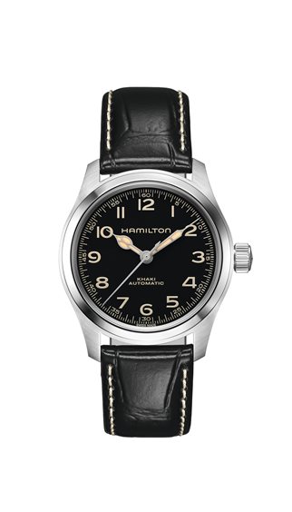 Noto ai fan come “The Murph”, è uno degli orologi più famosi nei film di fantascienza. La nuova versione presenta una cassa compatta in acciaio 38 mm, quadrante nero dall'ottima leggibilità, sfere con finiture in Super-LumiNova® beige dal sapore vintage, spirale in Nivachron e cinturino in pelle nera, senza allontanarsi dai codici estetici del suo predecessore da 42 mm. Animato dal movimento automatico H-10, vanta 80 ore di riserva di carica. Il Khaki Field Murph Auto 38 è perfetto per gli amanti degli orologi compatti.