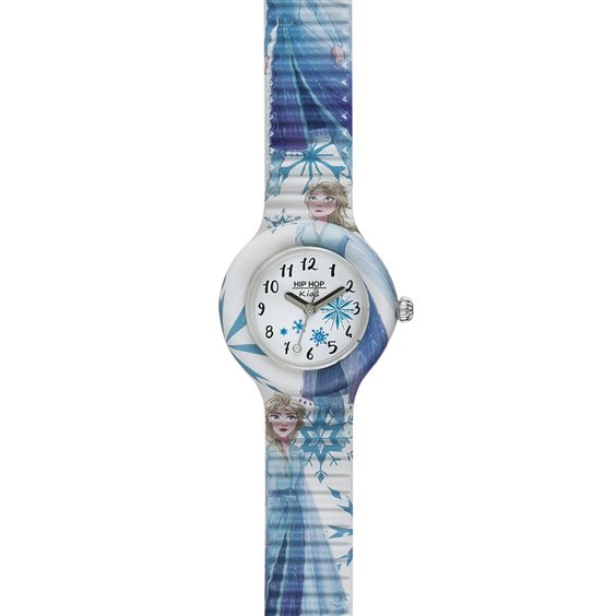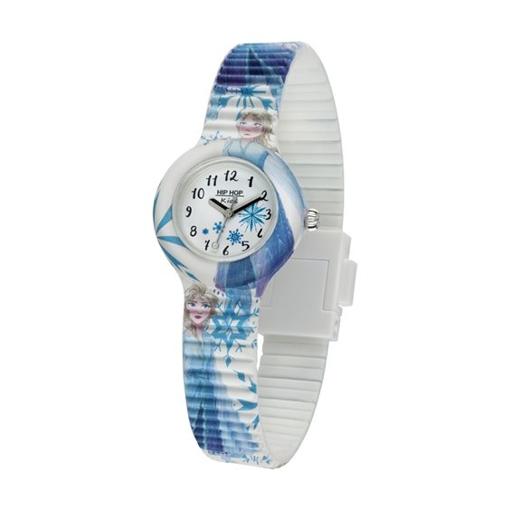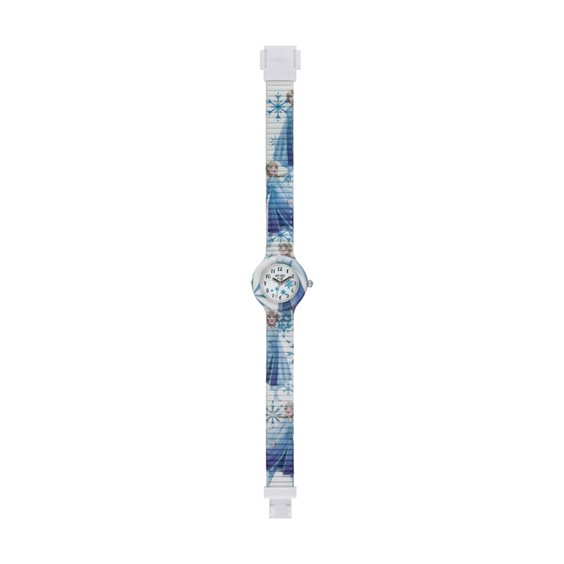 Orologio collezione Disney Frozen 2 con quadrante bianco con fiocchi di neve e cinturino con Elsa.