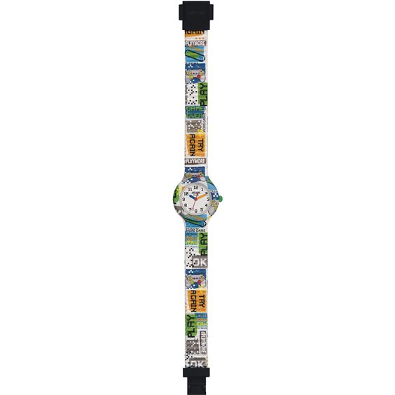 Orologio Solo Tempo Da Bambino Di Hip Hop Della Collezione Kids Fun. Orologio Con Quadrante Bianco Con Indici Colorati E Con Cassa Da 28 Mm. Movimento 3H Miyota 7T35. La Resistenza All'Acqua È Di 5Atm. Cinturino In Silicone Stampato. La Referenza È Hwu1036.