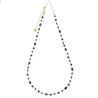 Collana girocollo in argento 925 placcato oro 23kt, impreziosita da spinello naturale. Elegante e versatile, regala un tocco moderno e raffinato. Lunghezza: 38 cm + 5 cm