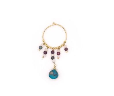 Orecchino in argento 925 placcato oro 23kt con pietre di apatite, tormalina multicolor e labradorite bianca, un gioiello vivace e originale. Perfetto per dare un tocco di colore e luminosità al tuo look, ideale per ogni occasione.