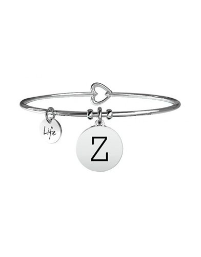 Bracciale bangle in acciaio 316L, circonferenza 20 cm, Ø 6 cm con ciondolo lettera Z e cristallo bianco. Dimensioni: ciondolo Ø 17 mm, cristallo Ø 1.50 mm