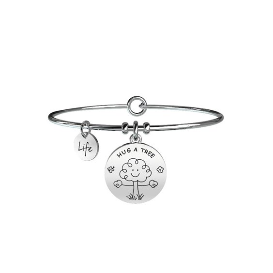 Bracciale rigido Kidult in acciaio da donna con alberopersonificato inciso su un ciondolo rotondo. Collezione LIFENature. Abbraccia un albero, difendi la natura, lotta ogni giorno per il tuo pianeta. Gli alberi sono la linfa del mondo, la stra verso il futuro. Articolo venduto con confezione e certificazione ufficiale Kidult. diametro 6.0cm.