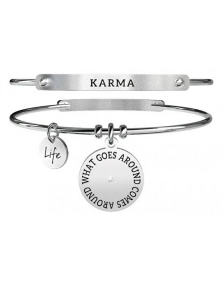 KARMA | AZIONE 'Nel bene e nel male, tutto quello che fai prima o poi ti tornerà indietro. Semina felicità e raccoglierai felicità.' Bracciale in Acciaio 316L ipoallergenico,ciondolo con zircone Diametro: 6 cm
