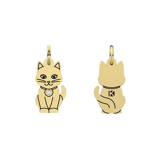 Ciondolo in acciaio 316L e PVD giallo gatto con cristallo. Dimensioni: ciondolo 16x9 mm, cristallo Ø 1.5 mm