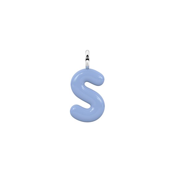 Ciondolo in acciaio smaltato azzurro a forma di lettera "S". • Dimensione ciondolo: 10x14,5 mm • Materiale: Acciaio 316L, Smalto