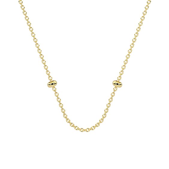 Girocollo in acciaio 316L e PVD giallo, lunghezza regolabile da 40 a 44 cm con catena rolò, stoppers con silicone. Dimensioni: stoppers Ø 5 mm