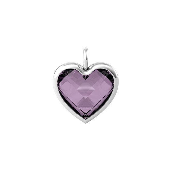 Ciondolo in acciaio 316L taglio cuore con glass viola faccettato taglio briolette. Dimensioni: ciondolo Ø 15x14 mm