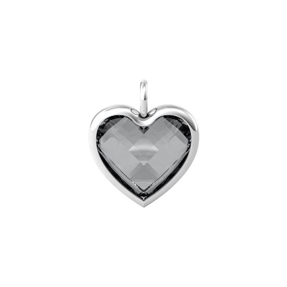 Ciondolo in acciaio 316L taglio cuore con glass grigio faccettato taglio briolette. Dimensioni: ciondolo Ø 15x14 mm