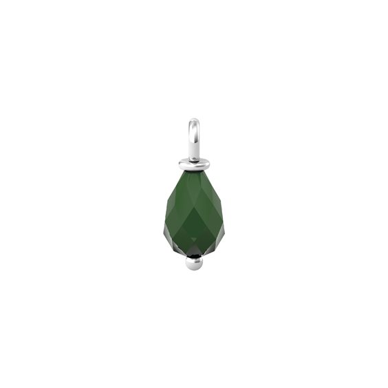 Ciondolo in acciaio 316L con goccia di agata verde faccettata. Dimensioni: ciondolo Ø 15x7 mm