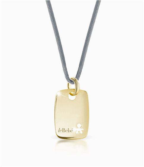 Piastrina in oro giallo 9kt e cordino. Con sagome traforate bimbo. Personalizzabile con l'incisione del nome del bebè.