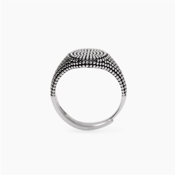 Anello chevalier in argento 925. Lavorazione borchiata. Misura regolabile da misura 19 a misura 27.