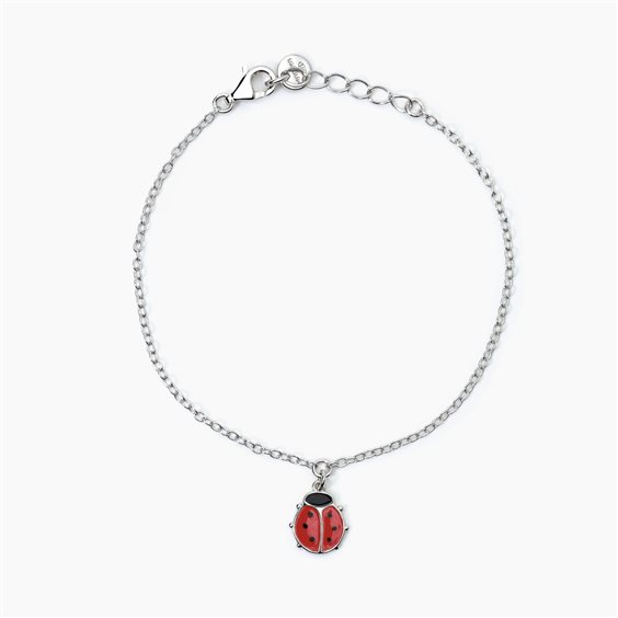 Bracciale in argento 925/°°° rodiato con catena forzatina 1.5 mm e pendente coccinella smaltato 8.5x8.5 mm, lunghezza regolabile da 14.5 a 16.5 cm