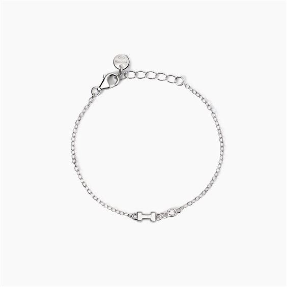Bracciale in argento 925/ººº rodiato con catena rolò 1.5 mm, elemento lettera "I" centrale 5.5x3 mm e diamante lab-grown 0,035 ct, Ø 2 mm, lunghezza regolabile da 12 a 14 cm