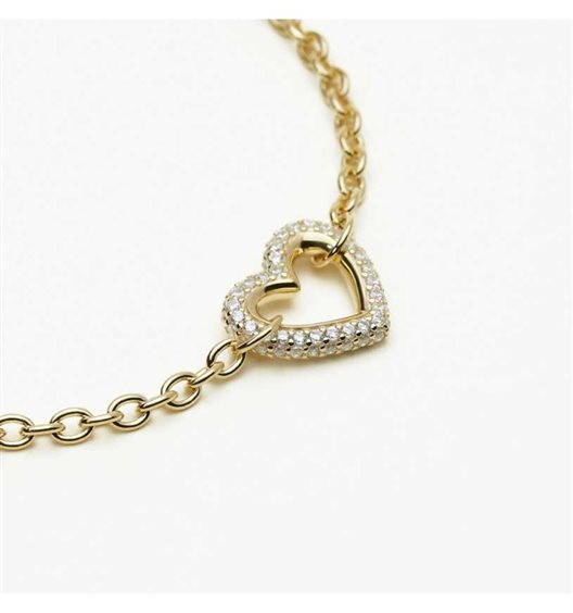Bracciale in argento 925/°°° dorato con catena rolò larghezza 2.90 mm, ciondolo cuore 15x13.25 mm e zirconi bianchi Ø 1.25 mm, lunghezza regolabile da 16 a 19 cm