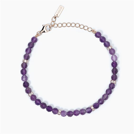 Bracciale donna , argento 925 placcato oro rosa 18K , lunghezza cm 19 regolabile a cm 16 , ametiste mm 4 , zirconi bianchi.