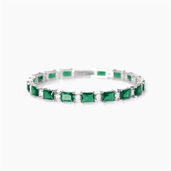 Bracciale in argento 925/ººº rodiato con smeraldi sintetici e zirconi. Chiusura pinza a molla. Misura cm 17.