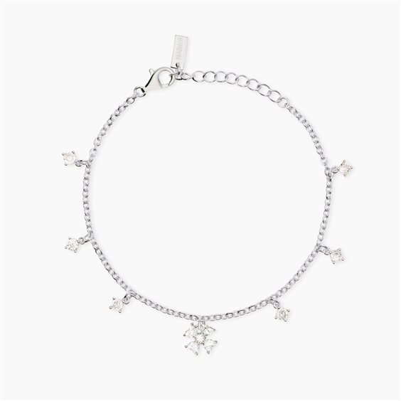 Bracciale in argento con catena rolò con ciondoli in zircone e quadrifoglio in zirconi taglio cuore. • Dimensione catena: 2 mm • Dimensione quadrifoglio: 7,5x7,5 mm • Dimensione zirconi taglio cuore: 3x3 mm • Diametro zirconi: 1,75 e 3 mm • Misura regolabile dalla 16 alla 19 cm • Materiale: Argento rodiato 925, Zirconi