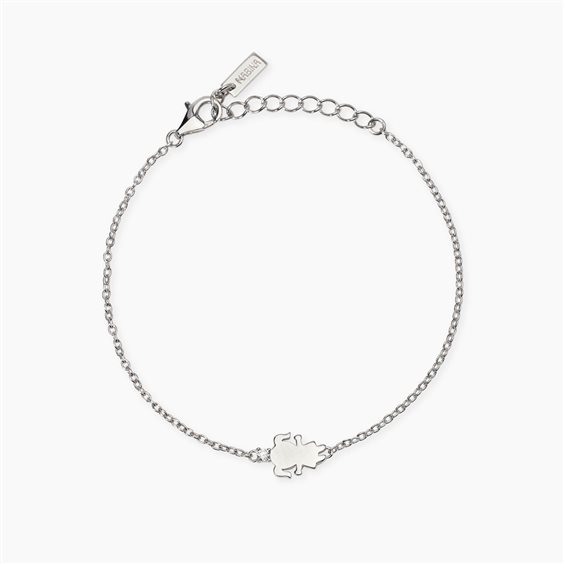 Bracciale in argento 925/°°° rodiato con catena rolò 1.4 mm ed elemento bambina 11x6.8 mm con diamante lab-grown 0.04 ct Ø 2 mm, lunghezza regolabile da 16 a 19 cm