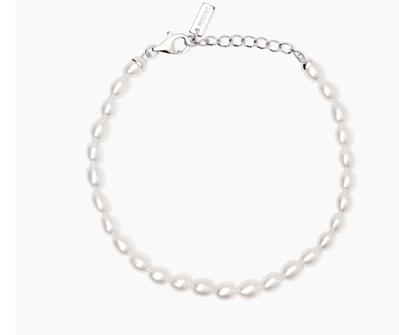 Bracciale in argento 925/°°° rodiato con perle riso coltivate Ø 3.5-4 mm, lunghezza regolabile da 16 a 19 cm