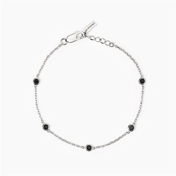 Bracciale in argento 925/°°° rodiato con catena forzatina 3 mm e zirconi neri Ø 3 mm, lunghezza regolabile da 18.5 a 20.5 cm
