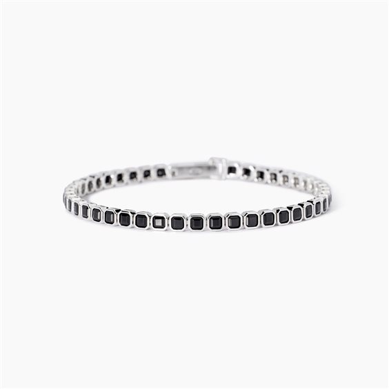Bracciale tennis in argento 925/ººº rodiato con zirconi neri. Chiusura pinza a molla. Misura cm 19.