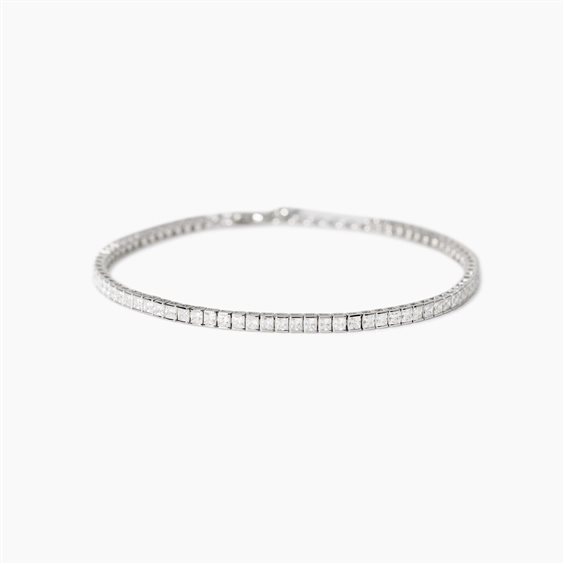 Bracciale tennis in argento 925 rodiato con zirconi bianchi taglio princess. Zirconi mm 2x2. Misura regolabile da cm 18 a cm 20.