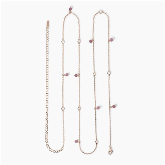 Catena girovita in argento 925/°°° rosato con zirconi bianchi Ø 2.5 mm e tormalina rosa Ø 4 mm, lunghezza regolabile da 77 a 95 cm