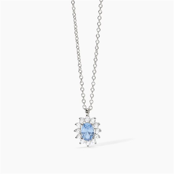 Girocollo in argento 925/°°° rodiato con catena forzatina 1.5 mm, acquamarina sintetica taglio ovale 5x7 mm e zirconi bianchi Ø 2 mm, lunghezza regolabile da 40 a 45 cm