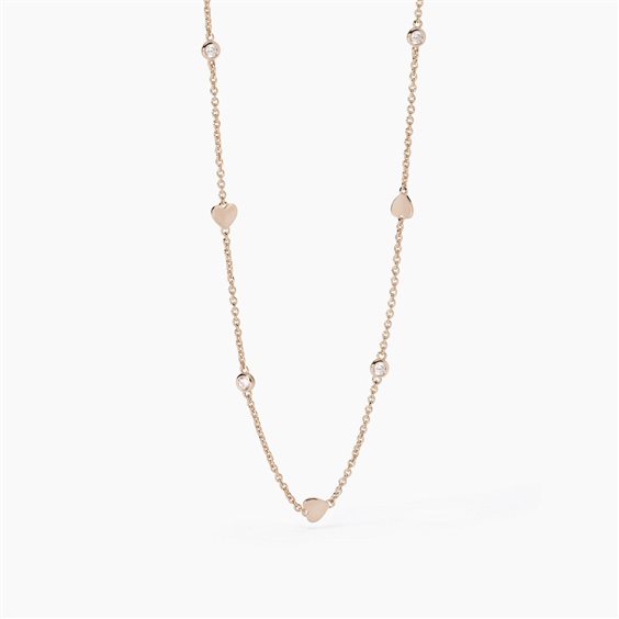 Girocollo in argento 925/ººº placcato oro rosa 18K con catena forzatina 1.5 mm, elementi cuore 5x5.5 mm e zirconi Ø 2.5 mm, lunghezza regolabile da 38 a 42 cm