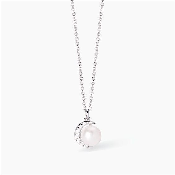 Girocollo con ciondolo in perla impreziosito da cubic zirconia a mezzaluna