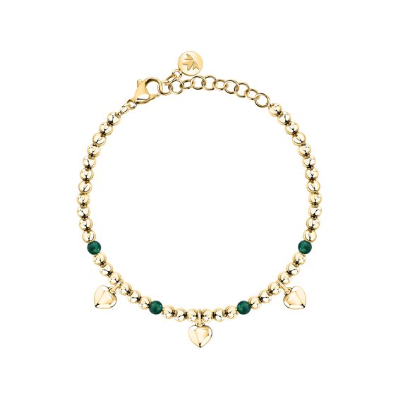 BRACCIALE MORELLATO TALISMANI - SAIX15 - Genere : Donna, Misura: 16|3, Colore: Oro, Morellato experience: Everyday, Materiale: Acciaio, Peso: 8,570 gr, Diametro Perle: ∅3.5mm mm, Pietra: Agata, Colore pietra: Verde, Simbolo: Cuore, Certificato di autenticità: Sì, Confezione: Originale Morellato