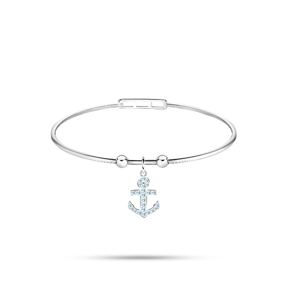 Bracciale rigido acciaio MORELLATO della linea Enjoy, con pendaglio ancora con cristalli celesti. Forma ovale misura 5.30 x 5.90 circa, regolabile.