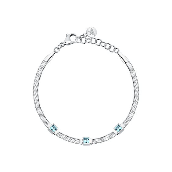 BRACCIALE MORELLATO GIOIA - SAVY34 - Genere : Donna, Misura: 16|3, Colore: Silver, Morellato experience: Everyday, Modello: Catena, Materiale: Acciaio, Cristalli, Peso: 3,850 gr, Diametro Perle: 3*3mm mm, Pietra: Cristalli, Colore pietra: Azzurro, Certificato di autenticità: Sì, Confezione: Originale Morellato