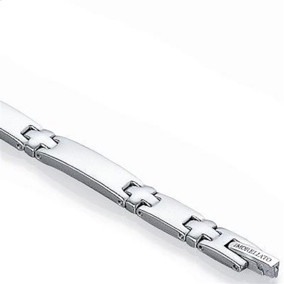 BRACCIALE SPORTIVO DA UOMO, IN ACCIAIO SATINATO CON MAGLIE INTERE PIENE E SNODATE A FORMA DI PICCOLE CROCI A MOTIVO FANTASIA.