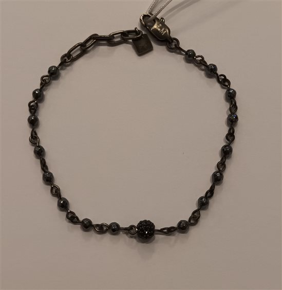 Bracciale uomo in acciaio 316L , catena maglia rolò , lunghezza cm 21 con messa a misura fino a cm 18 , sfere in ematite antracite e acciaio lucido , sfera centrale on cristalli neri incassati.Immagine indicativa , la confezione può variare di forma e colore.