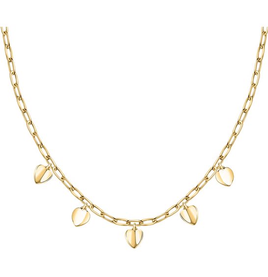 Girocollo Morellato in acciaio 316L dorato. Catena maglia allungata con 5 cuori pendenti sul davanti. Misura regolabile da cm 40 a cm 45.