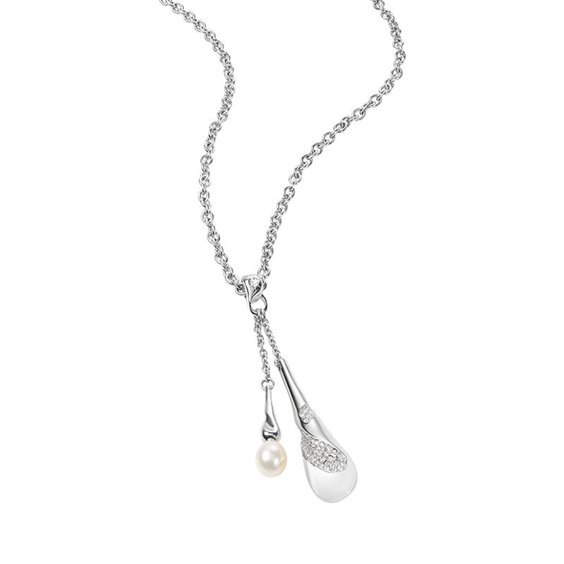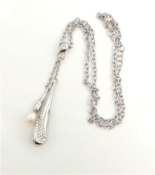 Collana acciaio Morellato coll. Perla lunghezza cm.42 con pendente doppio cm.49 con perla coltivata a.d. e cubic zirconia