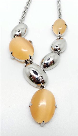 MORELLATO collana da donna collezione MOSAICO in acciaio con pietre cat eye mandarino e diamante naturale, lunghezza 45 cm.