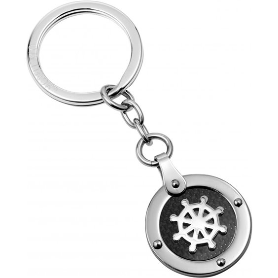 Portachiavi uomo , acciaio 316L , lunghezza cm 8 , simbolo timone su fibra carbonio. Scatola e garanzia originale.