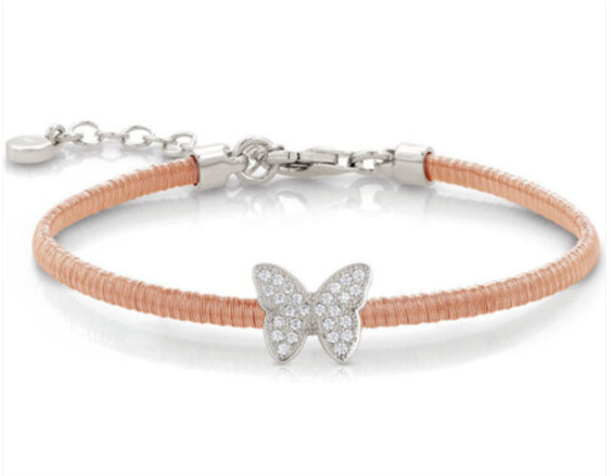 BRACCIALE CON CORDINO MARRONCINO CON FARFALLA IN ARGENTO E CRISTALLI.