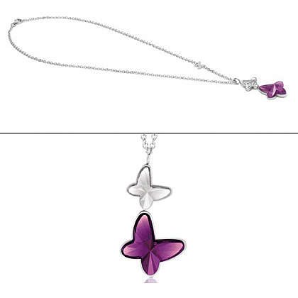 Collana Nomination in acciaio con due farfalle di diverse dimensioni in cristallo viole e bianco. Lunghezza collana: 45 cm (ciondolo compreso) Marca: Nomination Confezione: scatola originale Genere: donna Categoria: collana Cod. prodotto: 021371/001