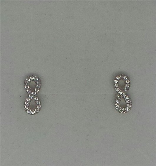 Orecchini a lobo in argento 925 con pendente a forma di Infinito con Cubic Zirconia di colore bianco. Misura pendente 1x0,5 cm. Made in Italy. Collezione Flair.