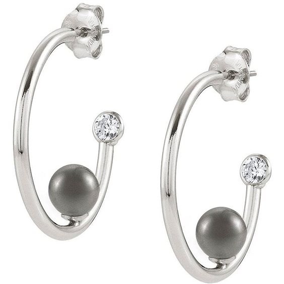 Orecchini BELLA in argento 925, Cubic Zirconia e perle (CERCHI GRANDI) (PERLA GRIGIA)