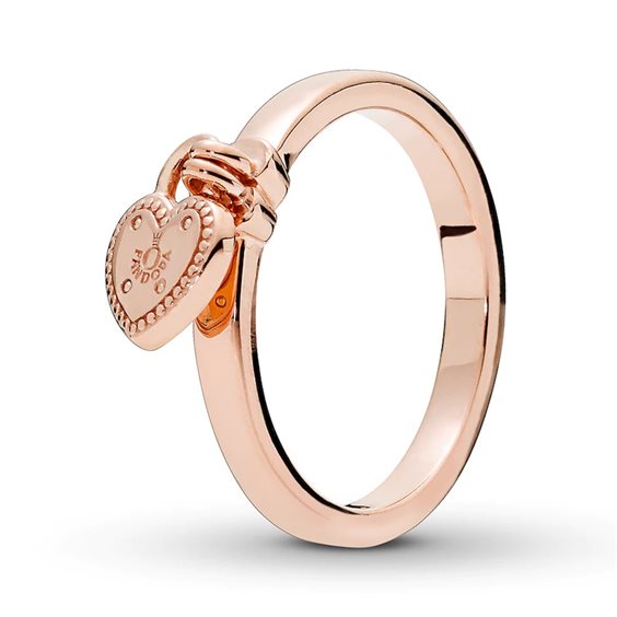 Anello in lega metallica placcata oro rosa 14kt con ciondolo lucchetto a forma di cuore