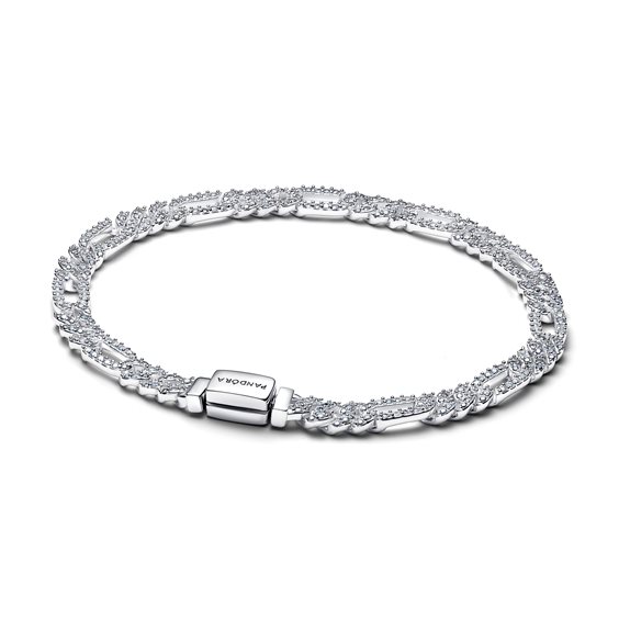 Bracciale in argento 925, maglia cubana con ovali in zirconia cubica